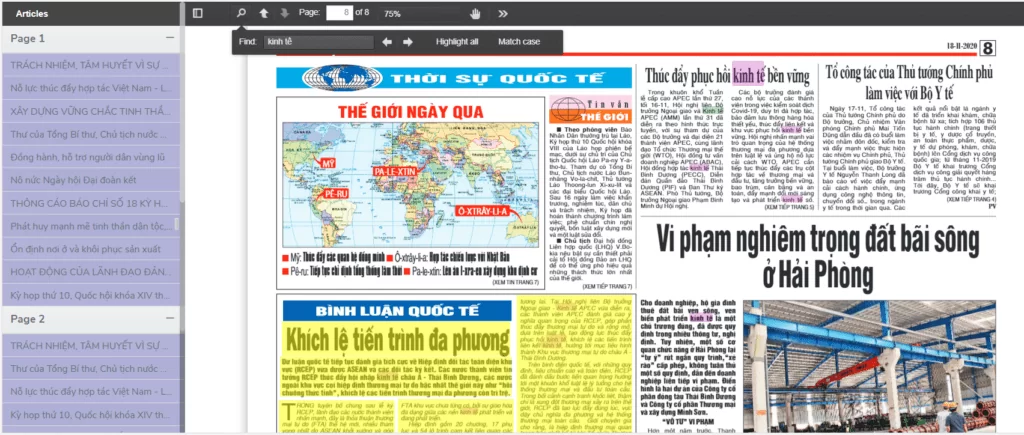 Chuyển đổi số được xác định là xu thế tất yếu của ngành báo chí. Tiếp nguồn năng lượng đón đầu cùng xu thế chuyển đổi số báo chí, VIETBIS đã thực hiện dự án thư viện báo điện tử và đưa vào nhiều công nghệ có thể kể đến là công nghệ nhận diện ký tự quang học OCR, công nghệ PDF Searchable, tự động khoanh vùng bài báo, tự động nhận diện vùng (tiêu đề, nội dung, ảnh) và tự động bóc tách nội dung thông tin bài báo