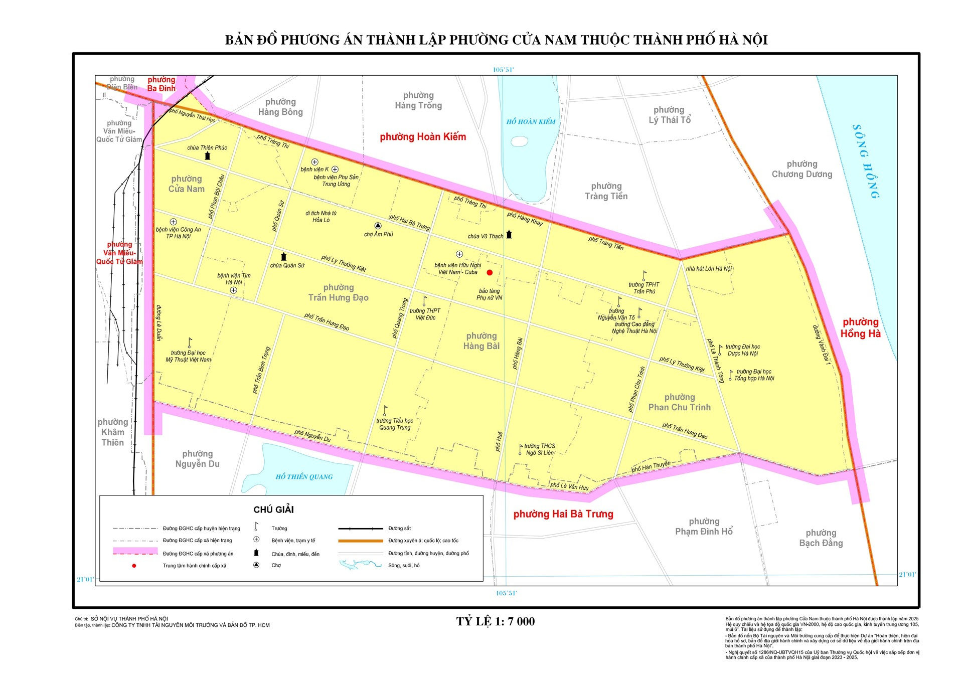 - Vị trí địa lý: Phường Cửa Nam hiện nay tiếp giáp với các phường như Hàng Bông, Tràng Tiền và một số khu vực lân cận thuộc quận Hoàn Kiếm. Phía Bắc giáp với khu vực Hồ Gươm, phía Nam tiếp giáp với các tuyến đường lớn như Lê Duẩn, phía Đông là khu vực phố cổ, và phía Tây nối liền với các khu vực hành chính quan trọng. Ranh giới này được xác định rõ ràng trong bản đồ địa giới hành chính mới, giúp người dân dễ dàng nhận biết vị trí của phường.