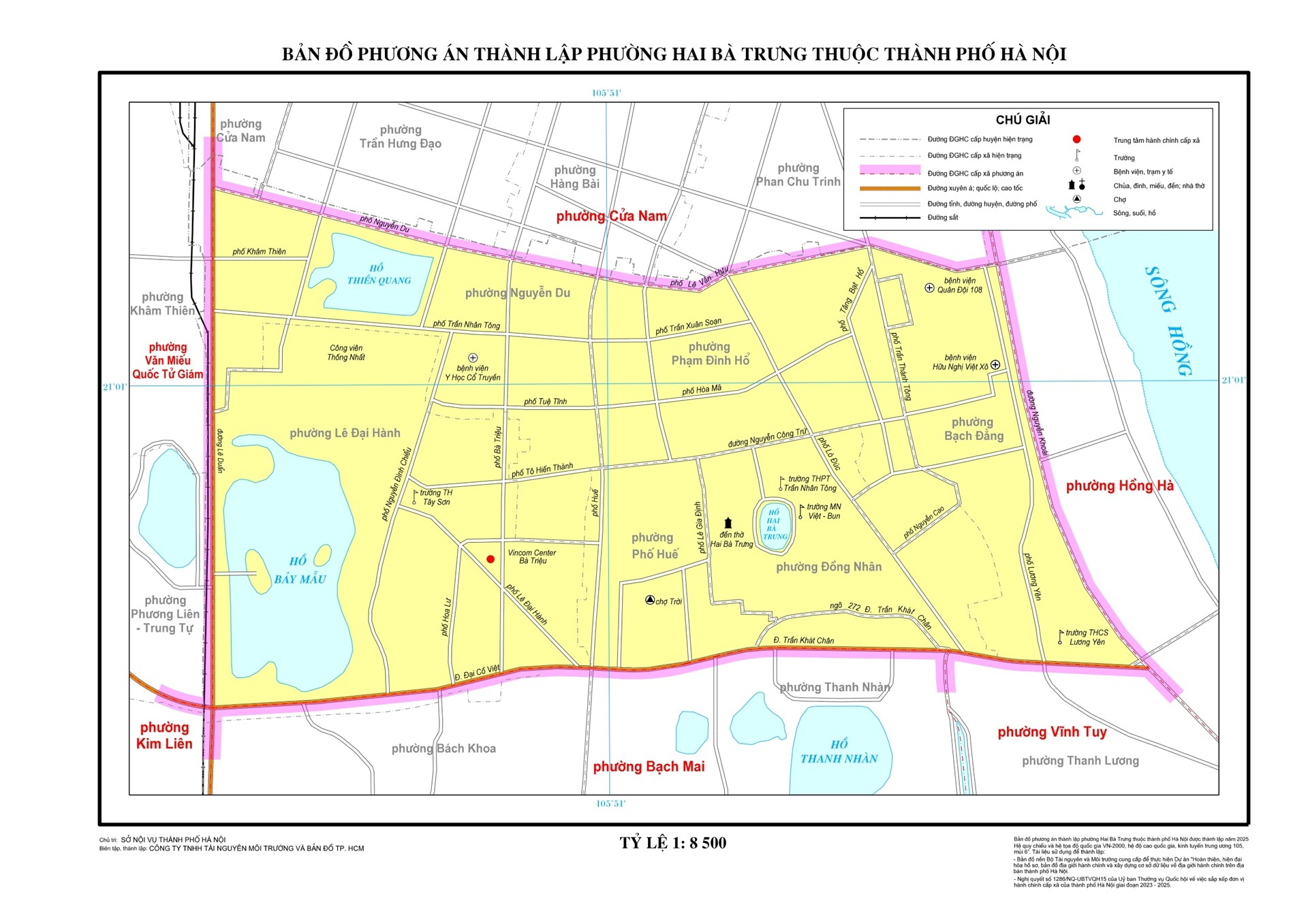 - Vị trí địa lý: Sau sáp nhập, phường Hai Bà Trưng được hình thành từ việc hợp nhất một phần diện tích và dân số của các phường lân cận như Bạch Đằng, Nguyễn Du và một phần phường Lê Đại Hành. Ranh giới được xác định rõ ràng, giáp các phường lớn như Hoàn Kiếm và Thanh Xuân.