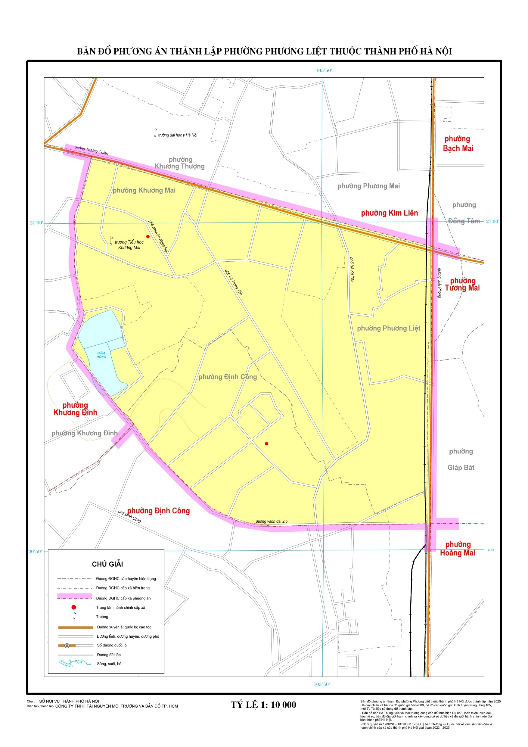 Theo Nghị quyết 1656/NQ-UBTVQH15 ban hành ngày 16/6/2025, sắp xếp toàn bộ diện tích tự nhiên, quy mô dân số của phường Khương Mai, phần còn lại của phường Thịnh Liệt, phần còn lại của phường Phương Liệt, phần còn lại của phường Định Công, phần còn lại của phường Khương Đình và phường Khương Trung thành phường mới có tên gọi là phường Phương Liệt.