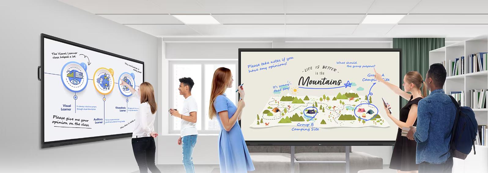 Phần mềm bảng trắng độc quyền của LG: Có nhiều mẫu và công cụ giảng dạy khác nhau như thước kẻ, bảng và giấy ghi chú, thúc đẩy học sinh chủ động tham gia và tạo điều kiện cho các bài học trực quan.