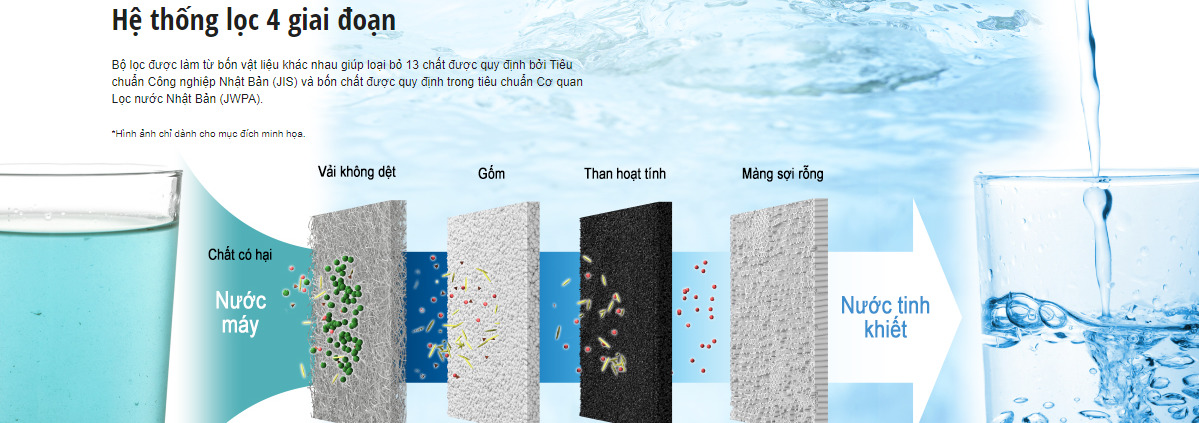 Máy lọc nước ion kiềm của Panasonic đều được trang bị hệ thống lọc đến 4 tầng loại bỏ 17 chất được quy định Tiêu chuẩn Công nghiệp Nhật Bản. Máy điện giải ion kiềm Panasonic tạo ra nước tinh khiết sử dụng trực tiếp không cần đun sôi, loại bỏ 99.99% vi khuẩn (được thẩm định bởi đơn vị thứ 3 là phòng thí nghiệm Nghiên cứu Thực phẩm Nhật Bản).