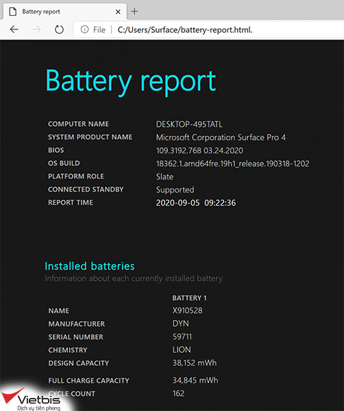 Khi sử dụng có lẽ chúng ta chẳng cần kiểm tra số lần sạc làm gì. Tuy nhiên khi mua Surface qua sử dụng thì việc này rất quan trọng. Vì số lần sạc PIN là một yếu tố quan trọng quyết định chiếc Surface còn tốt hay không.