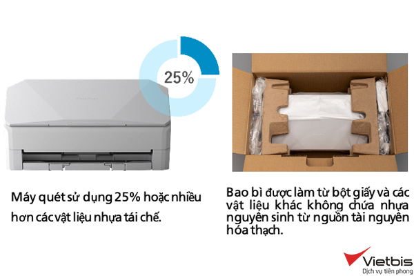 - Thân máy Ricoh iX2500 được làm từ hơn 25% nhựa tái chế.