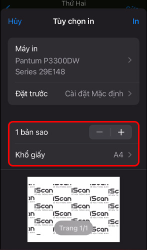 Bước 4: Chúng ta có thể tùy chỉnh các thông số cơ bản như tạo bao nhiêu bản sao, khổ giấy,....